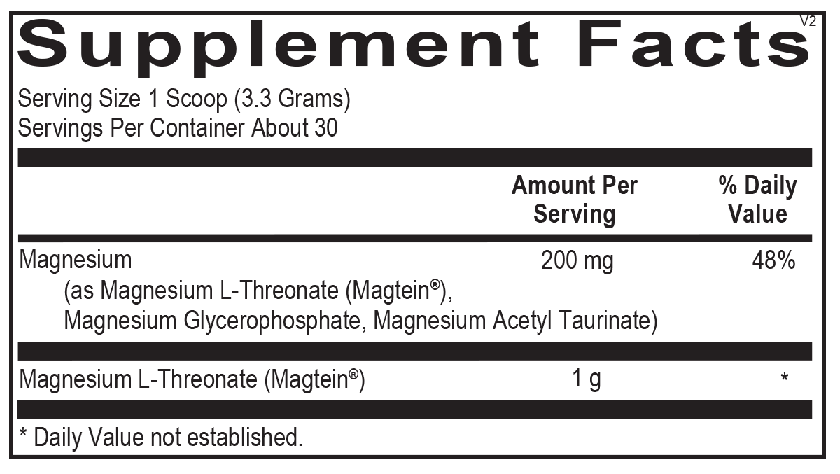 Memory and ConcentrationMemory and mental focus are common patient concerns. In an animal model, magnesium L-threonate was found to increase the synaptic density and function of neurons in the brain. A decline in neuronal synapses, their function and consequent atrophy of the brain are associated with impaired cognition, a process that increases with age. In a study of older adults with memory concerns, those that received 1.5 to 2 g of magnesium L-threonate daily demonstrated improvement in executive function, working (short-term) memory and episodic memory.