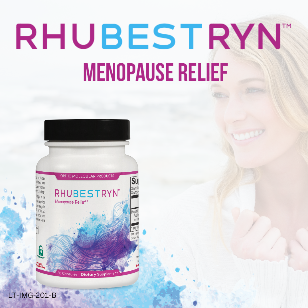 Manage menopause symptoms like mood swings and low energy with Rhubestryn. The potent rhapontic rhubarb root extract stabilizes hormones and boosts energy levels, ensuring you navigate menopause smoothly. #menopause #womenshealth #orthomolecular #orthomolecularproducts